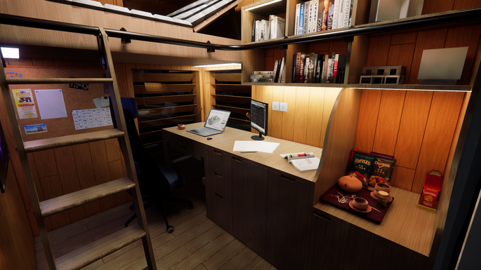 This project is to design a home office pod. Our design has two main function, which is to do work and it doubles as a loft area where you can relax after a long day of working. Or even just to chill out for a quick break from working. Besides, we also want user to close to the nature when they are working so they won't feel very stress at that time, this is due to being in nature, or even viewing scenes of nature, can help to reduce anger, fear, and stress, and increases pleasant feelings. Therefore, the main material of this home office pod is wood.